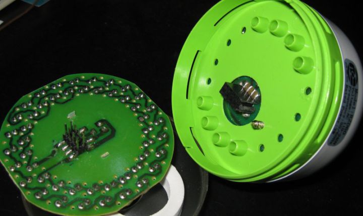В отличие от ламп с сенсорами, исправно работающими уже два года, последняя лампа уже подвергалась ремонту: вышел из строя один из светодиодов и половина "круга" перестала работать. Поскольку этот диод выходил из строя достаточно долго и постепенно - его удалось достаточно быстро обнаружить и заменить.